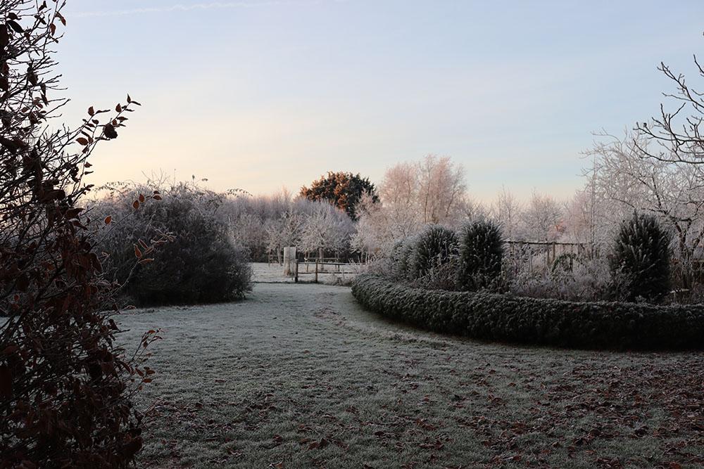 Hoewel de tuin in rust is, zijn er nog steeds belangrijke taken. Bescherm vorstgevoelige planten met een winterhoes, geef groenblijvende struiken water tijdens droge periodes en zorg ervoor dat vijvers niet volledig dichtvriezen. Dit is ook een ideaal moment om tuinplannen te maken voor het komende seizoen.